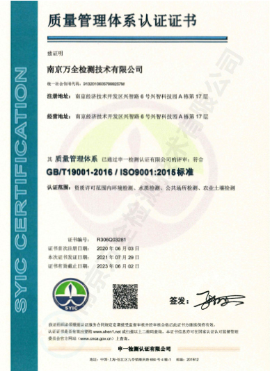 南京萬全檢測技術(shù)有限公司,籌建于2013年1月,注冊(cè)資金500萬,公司坐落于南京經(jīng)濟(jì)技術(shù)開發(fā)區(qū)興智路6號(hào)興智科技園A棟17層,實(shí)驗(yàn)室占地面積1750余平米。公司是一家獲得省級(jí)CMA計(jì)量認(rèn)證資質(zhì)、具有獨(dú)立法人、政府認(rèn)可的綜合性、專業(yè)性的檢測機(jī)構(gòu)。環(huán)境監(jiān)測業(yè)務(wù)是其重要的檢測業(yè)務(wù)之一,目前已獲得省級(jí)計(jì)量資格認(rèn)可項(xiàng)目314項(xiàng),設(shè)備齊全,具有較強(qiáng)的技術(shù)能力。